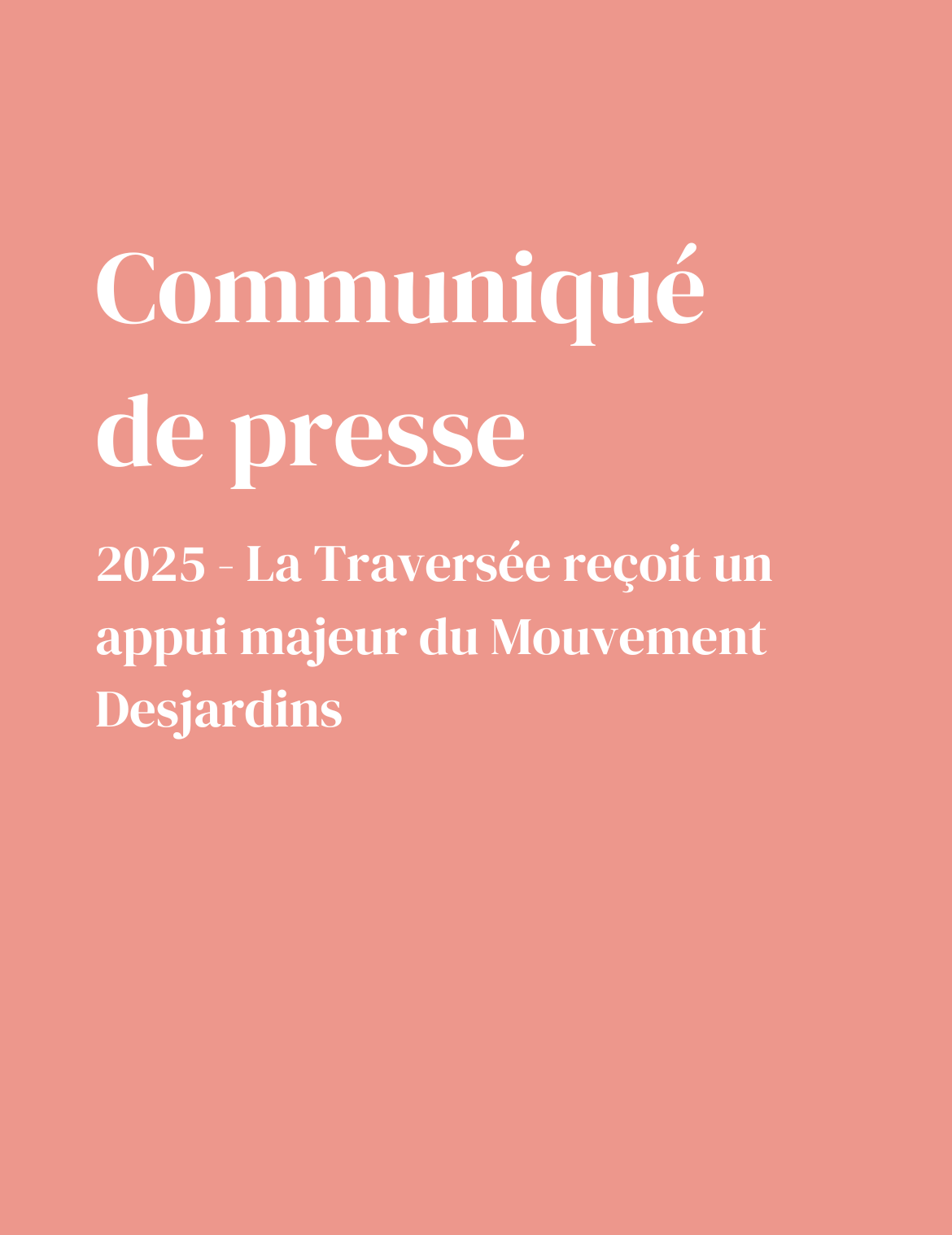 Pour toute demande d’entrevue ou d’expertise auprès de La Traversée, envoyez vos demandes à [email protected] ou appelez le 450 465-5263.
